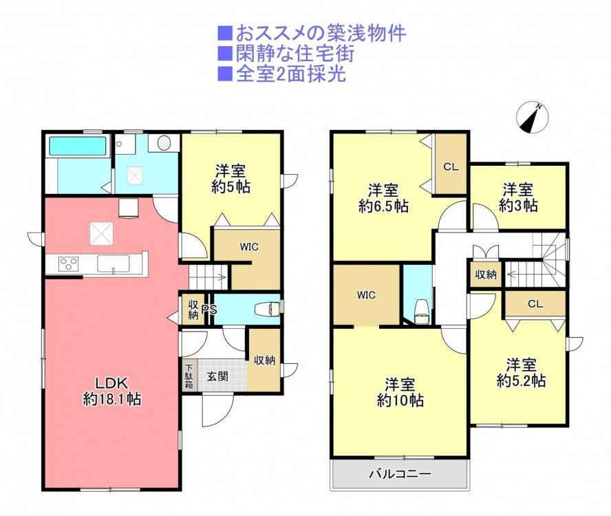 - システムキッチン、カウンターキッチン、食器洗浄乾燥機、シャンプードレッサー、洗浄便座、浴室乾燥機、追い焚き、複層ガラス、ウォークインクローゼット、モニタ付インターホン、ペット可、床下収納、トイレ2箇所