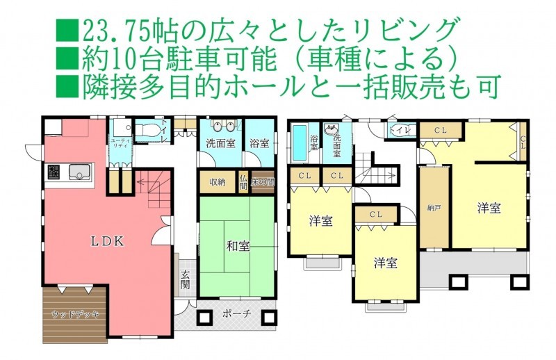 - システムキッチン、ペット可、駐車場2台分、駐車場3台分、トイレ2箇所