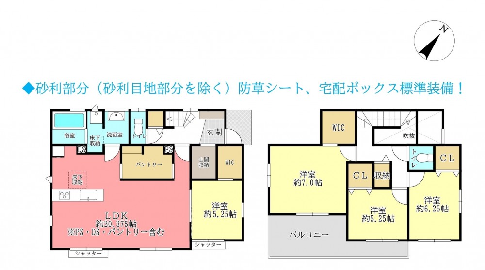 ◆砂利部分(砂利目地部分を除く)防草シート、宅配ボックス標準装備!