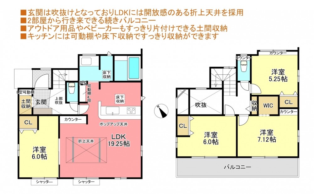 ■玄関は吹抜けとなっておりLDKには開放感のある折上天井を採用