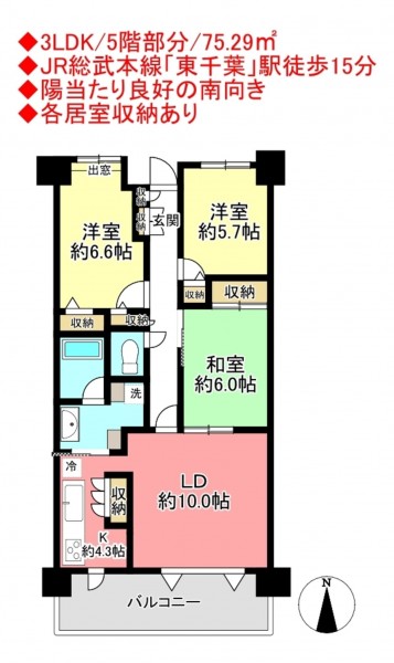 ◆3LDK/5階部分/75.29㎡